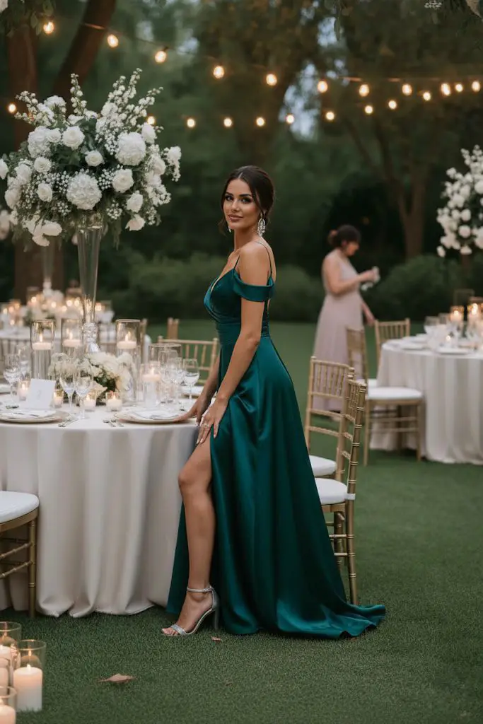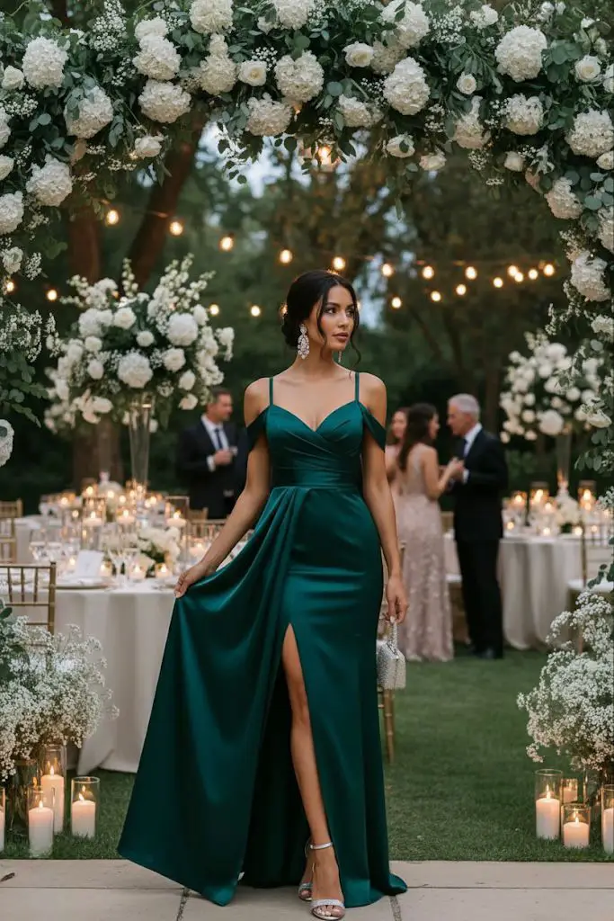 Εντυπωσιάστε με αυτό το μοναδικό γυναικείο πράσινο μάξι φόρεμα, ιδανικό για κάθε επίσημη περίσταση – από γάμους και βαφτίσεις, μέχρι βραδινές εξόδους. Το σχέδιο με τιράντες που πέφτουν διακριτικά στους ώμους χαρίζει ρομαντισμό, ενώ το βαθύ ντεκολτέ και το σκίσιμο στο πλάι προσθέτουν θηλυκή αυτοπεποίθηση. Η πλούσια ουρά στο πλάι ολοκληρώνει την εμφάνιση με έναν αέρα πολυτέλειας υψηλής ραπτικής.