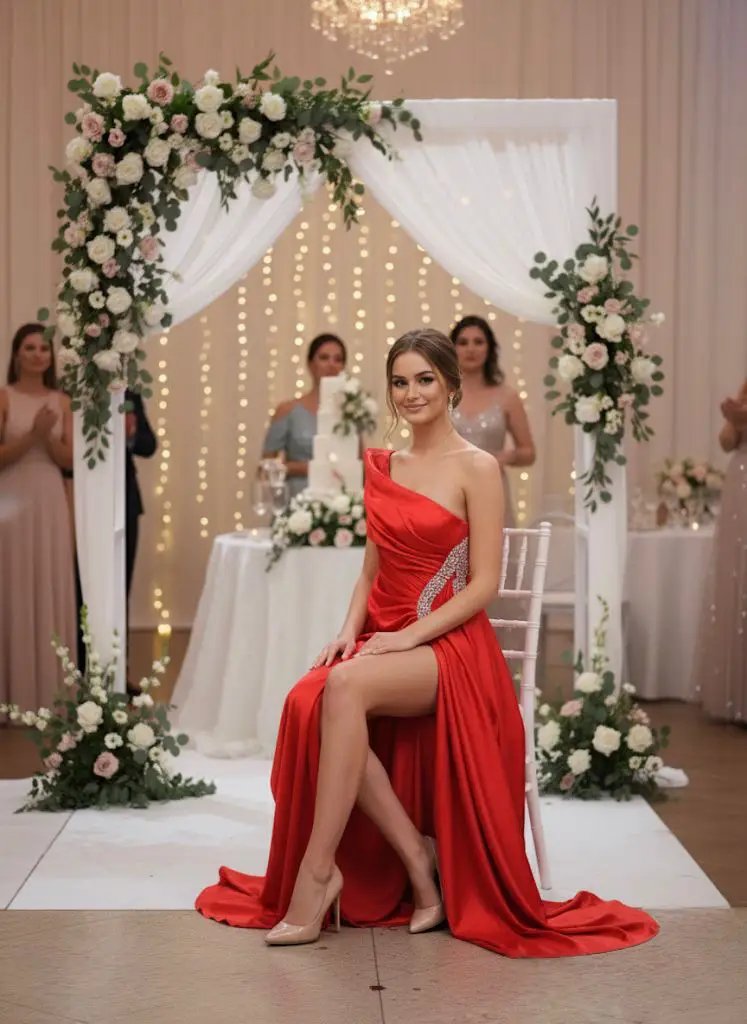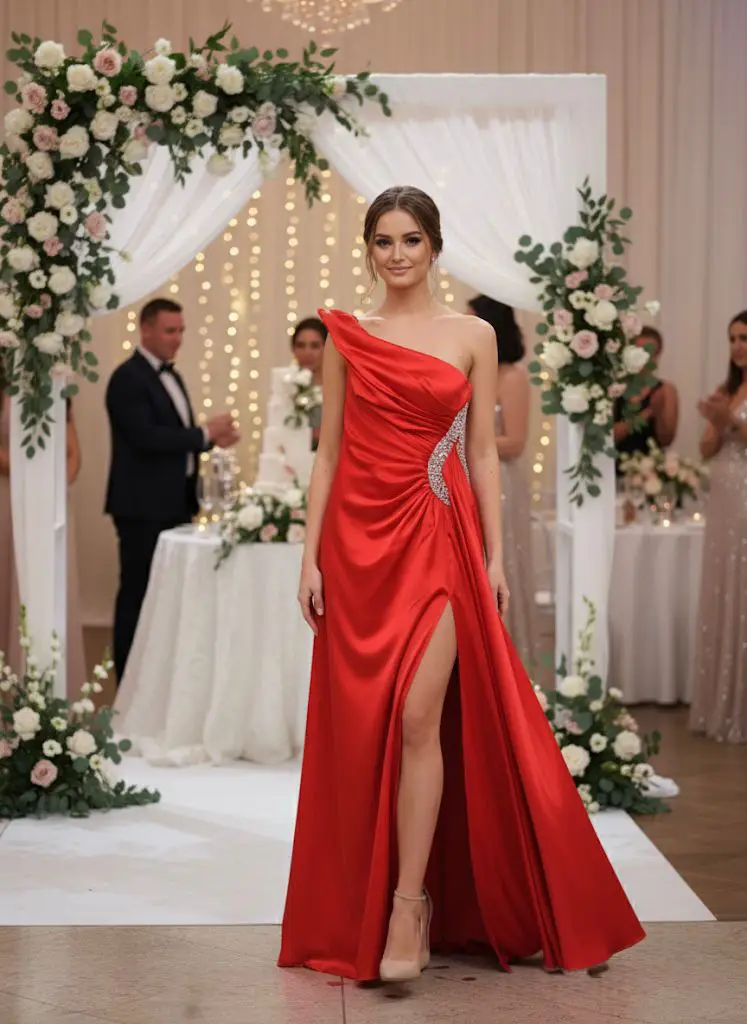 🔥 Κόκκινο Σατέν Φόρεμα – Η Απόλυτη Βραδινή Εμφάνιση