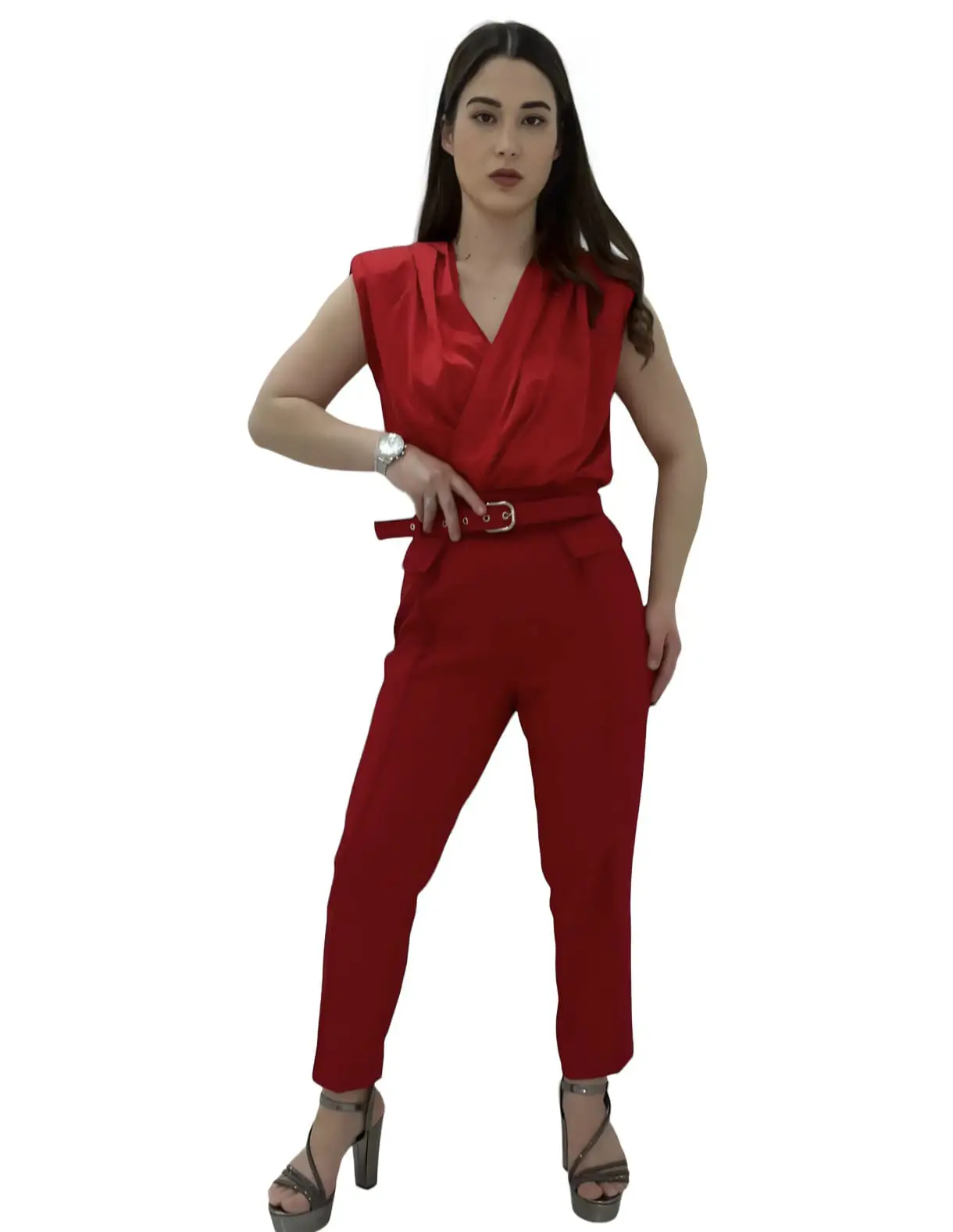 🔥 Γυναικείο Σετ Παντελόνι & Κορμάκι – Κόκκινο Εντυπωσιακό Look!