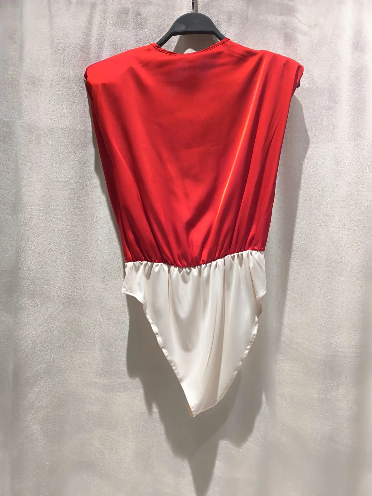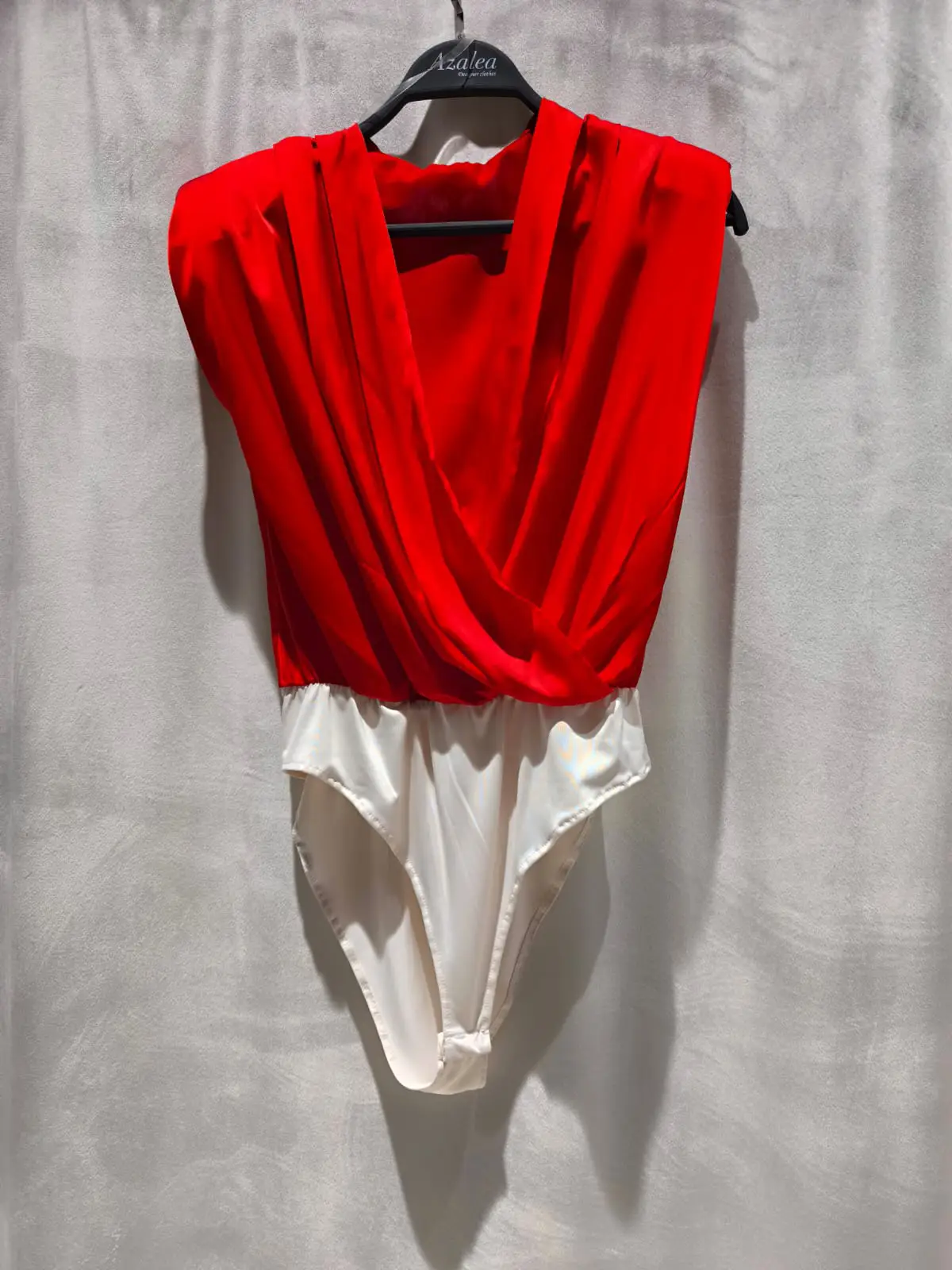 Το σατέν κορμάκι με βαθύ ντεκολτέ και διακριτικά κουμπιά αναδεικνύει τη σιλουέτα και αποπνέει πολυτέλεια. Ιδανικό για βραδινές εξόδους, formal εμφανίσεις ή ειδικές περιστάσεις, προσθέτει glam στην καθημερινότητά σου. Ο χρωματικός συνδυασμός κόκκινου με μπεζ βάση χαρίζει ισορροπία και μοναδικότητα.