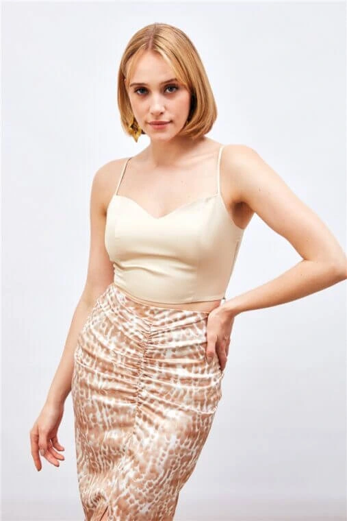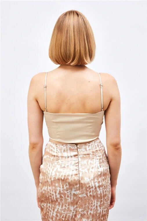 Μπλούζα Saten Crop με λεπτές τιράντες Μπεζ