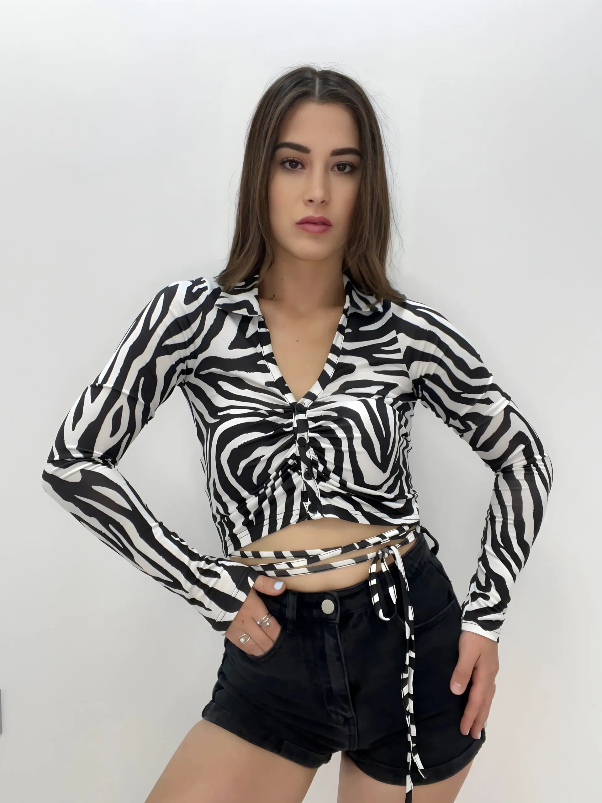 Μπλούζα zebra Με Δέσιμο Στην Μέση
