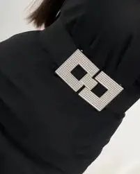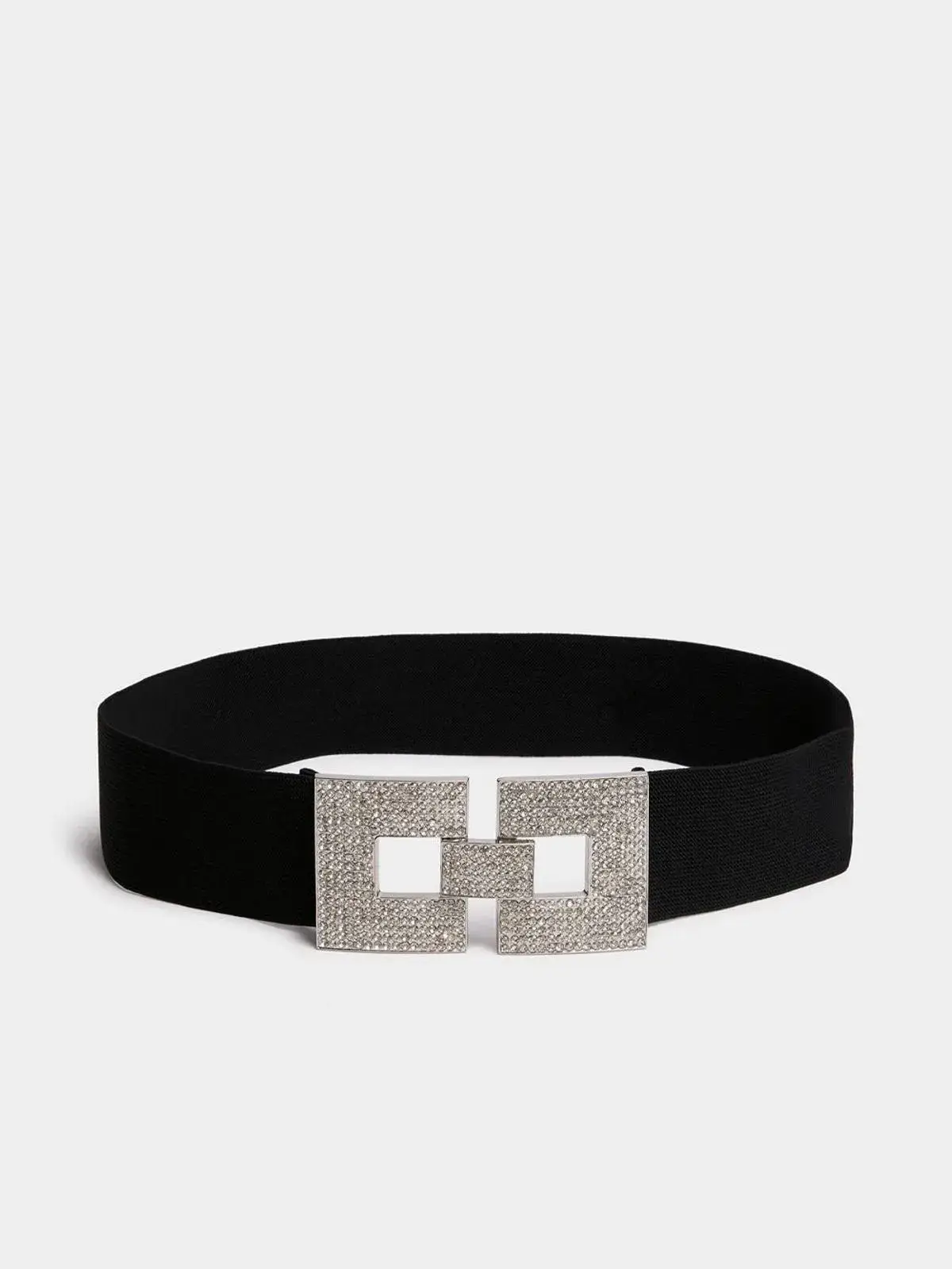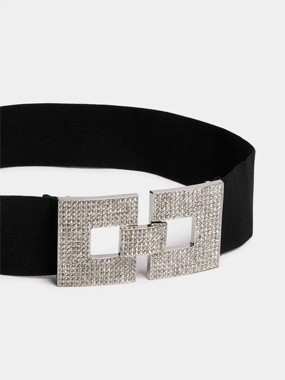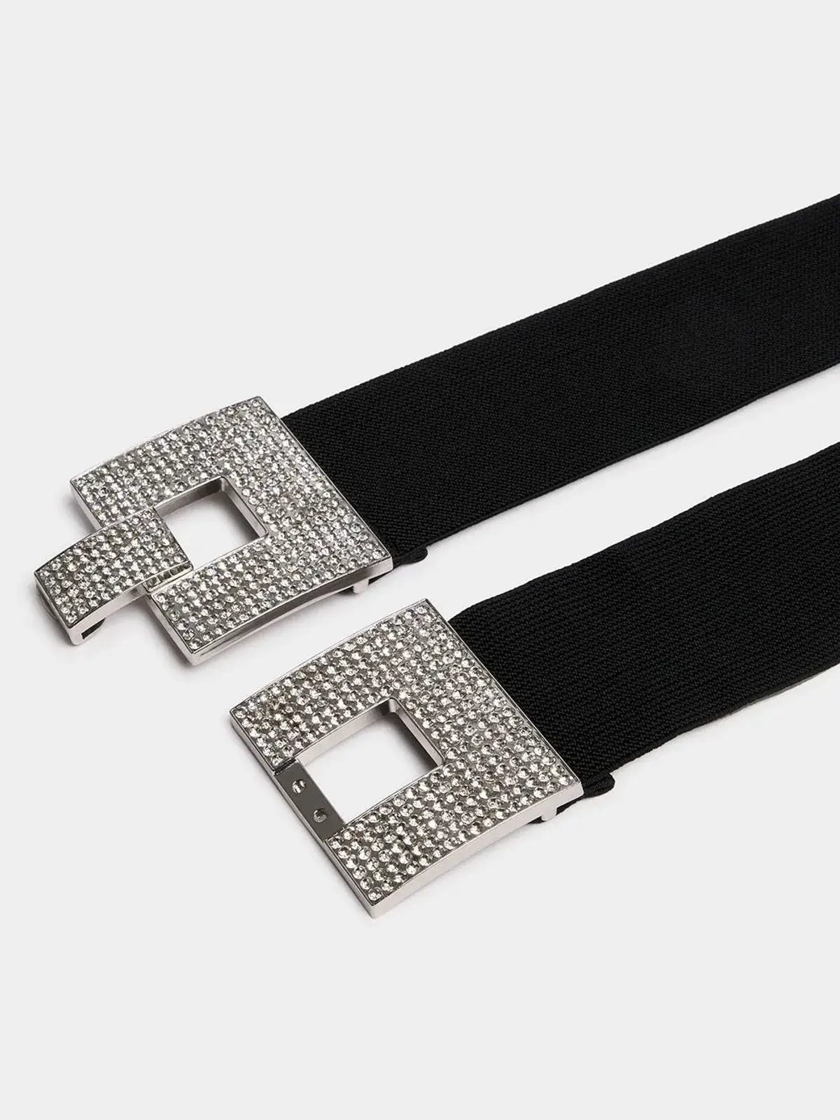 Γυναικεία Ελαστική Ζώνη Μαύρη με Τετράγωνη Ασημένια Αγκράφα