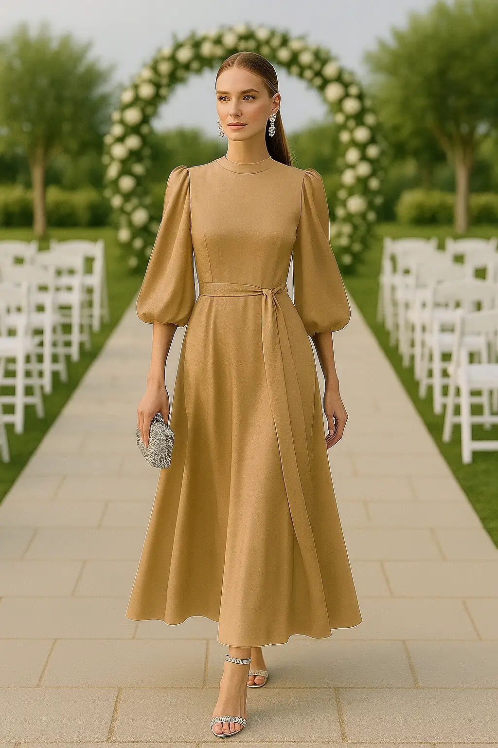 Γυναικείο Φόρεμα Miss Rossa – Μπεζ Σατέν, Απαράμιλλη Κομψότητα