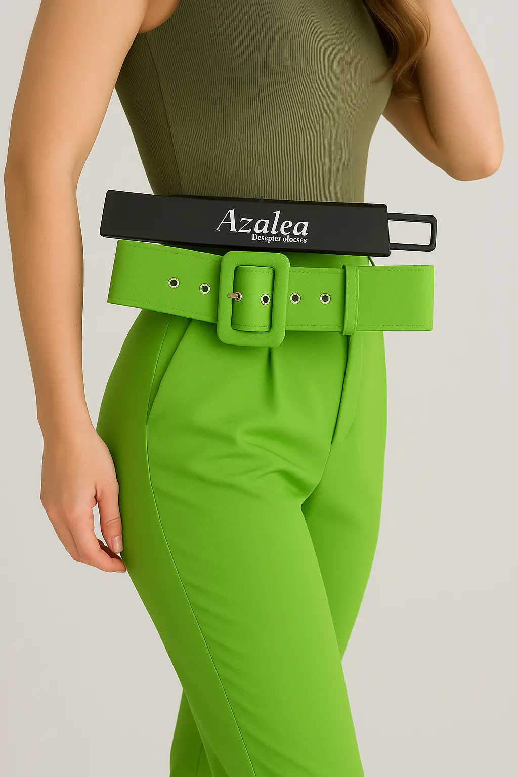 Γυναικείο παντελόνι με ζώνη λαχανί