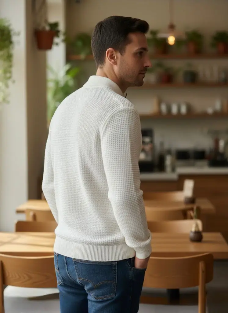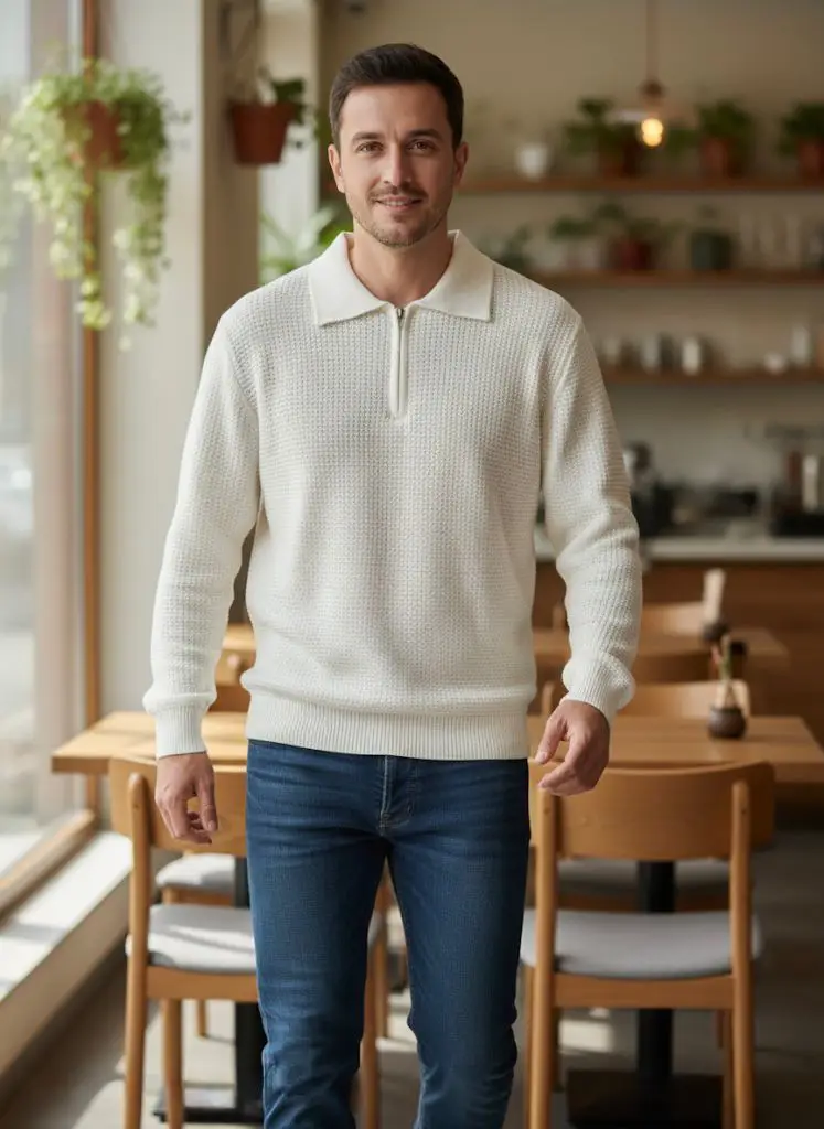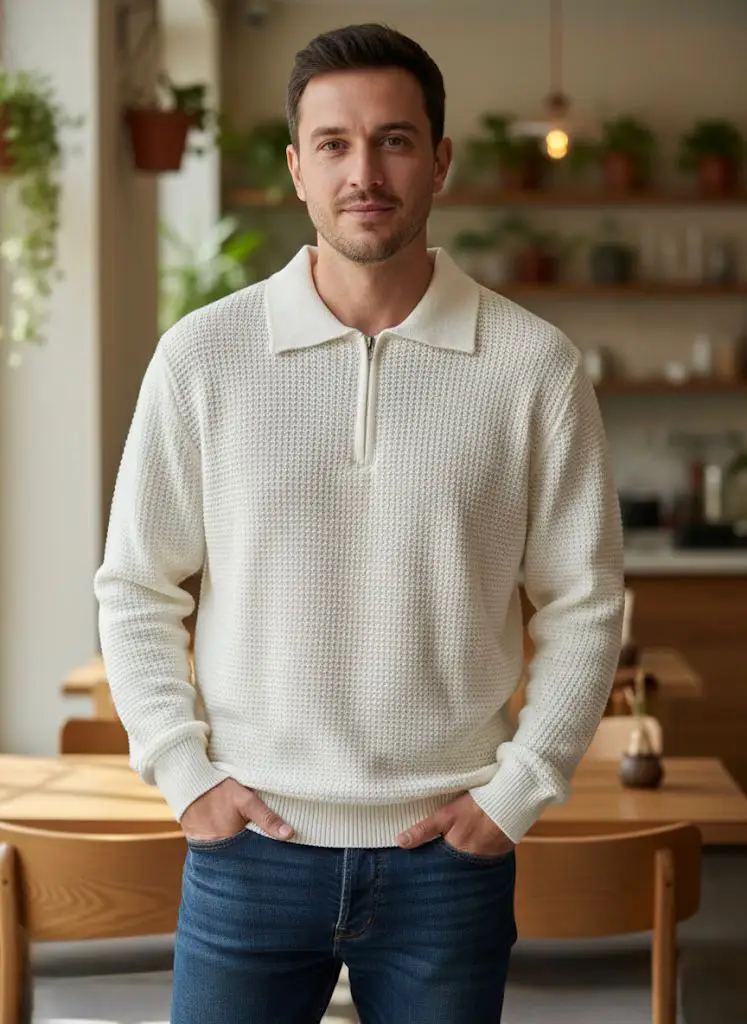 Άνετο, μαλακό και στιλάτο — αυτό το unisex πλεκτό σε εκρού απόχρωση είναι ιδανικό για κάθε look. Με κανονική γραμμή που κολακεύει όλους τους σωματότυπους και κλασικό γιακά με φερμουάρ μπροστά, προσφέρει διαχρονικό στυλ με μοντέρνα πινελιά.
