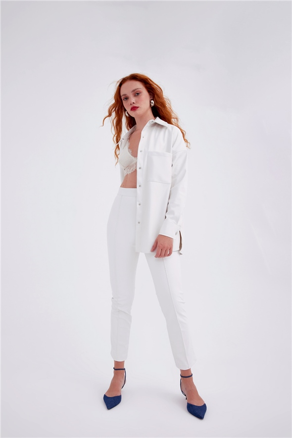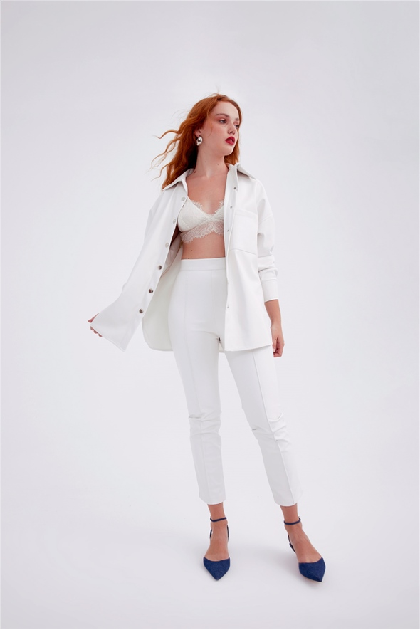 Ψηλόμεσο Δερμάτινο Παντελόνι Μπεζ
