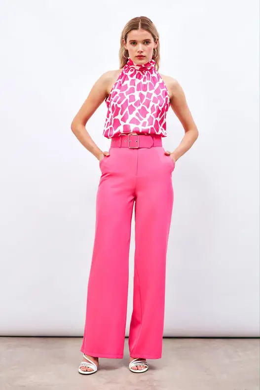 Ψηλόμεσο Παντελόνι με Ζώνη – Φούξια
