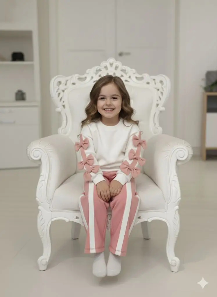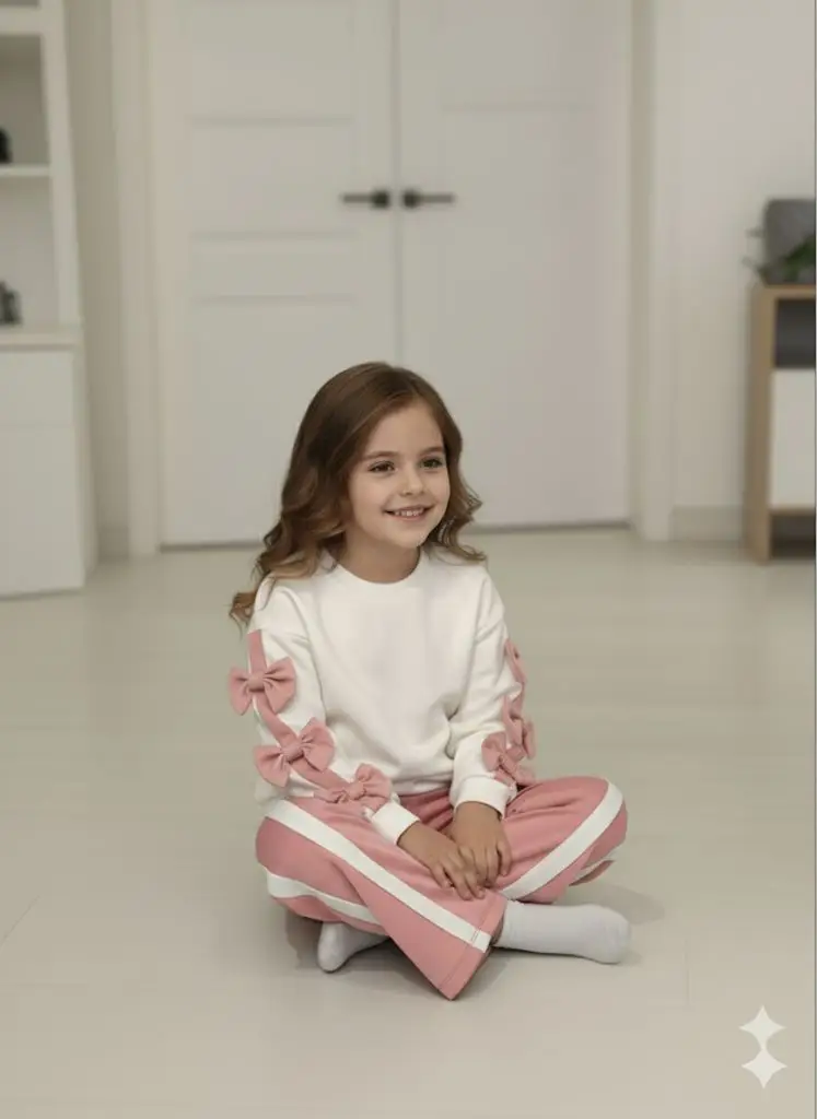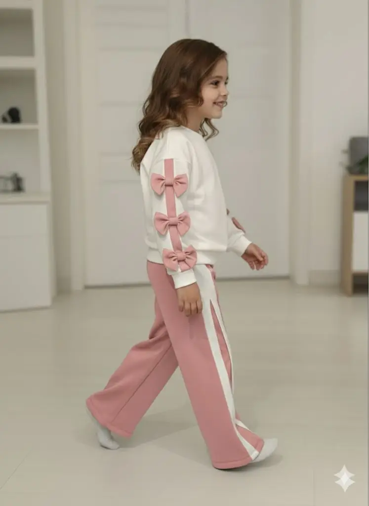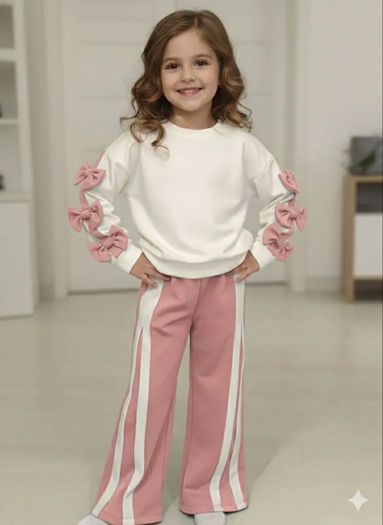 Το Σετ Φόρμα Flower συνδυάζει άνεση και στυλ, ιδανικό για κάθε μικρή fashionista. Η μπλούζα διαθέτει στρογγυλή λαιμόκοψη, μακριά μανίκια και τρία διακριτικά φιογκάκια, ενώ το φαρδύ ριπ λάστιχο στο τελείωμα προσφέρει άψογη εφαρμογή. Οι ροζ απαλές λεπτομέρειες δίνουν girly χαρακτήρα που ξεχωρίζει.