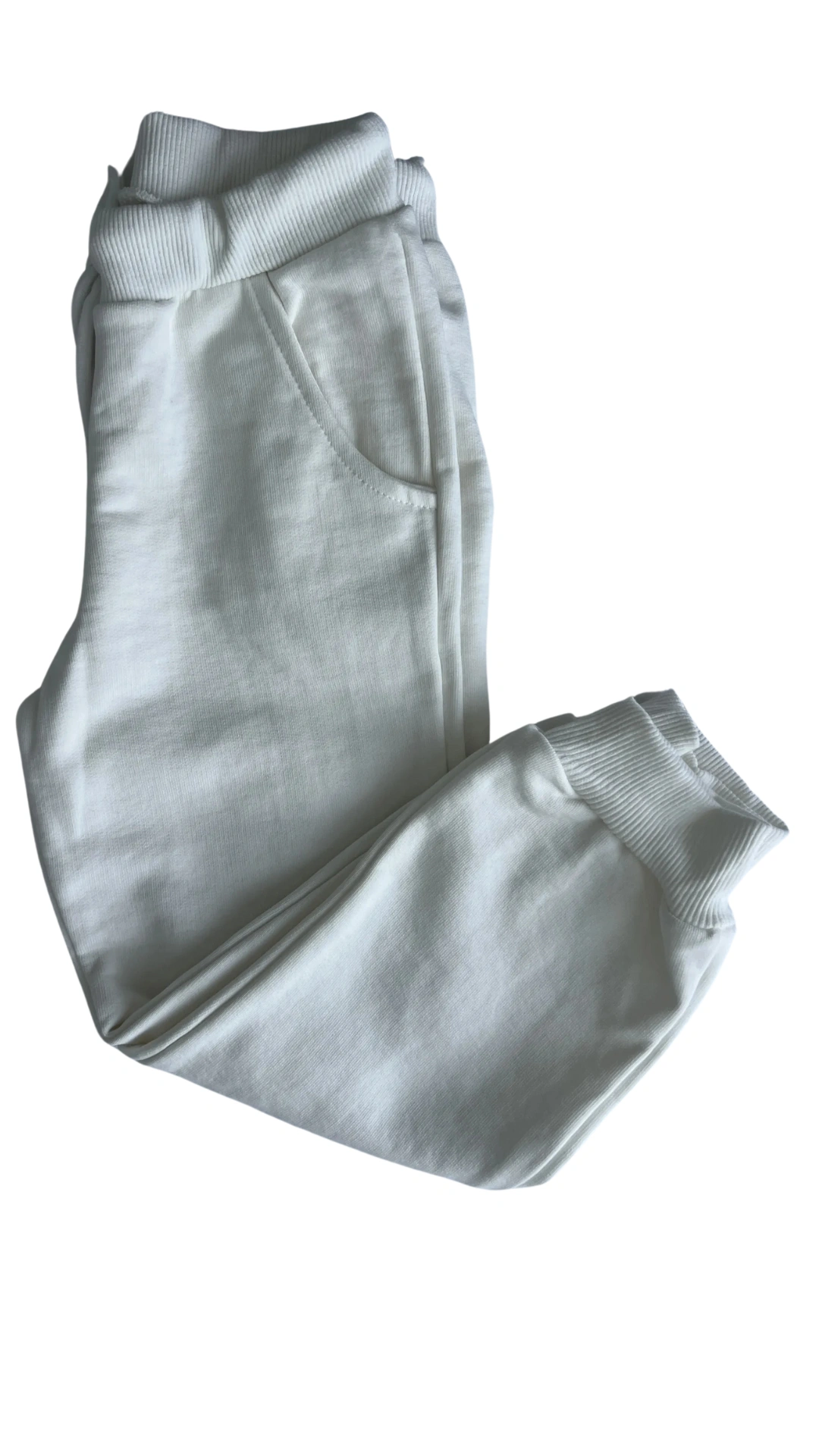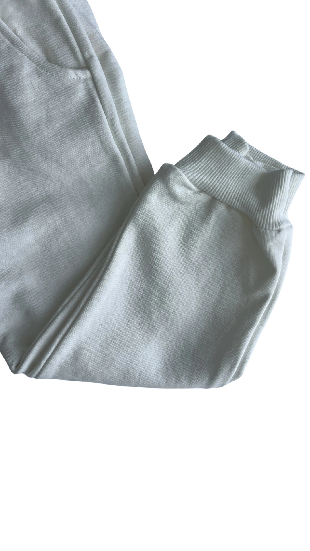 Στυλάτη Φόρμα με Εντυπωσιακή Λεπτομέρεια: Αυτή η άσπρη φόρμα ξεχωρίζει χάρη στο λάστιχο που αγκαλιάζει τη μέση και το τελείωμα, προσφέροντας άνεση και στυλ. Οι δυο πλάγιες τσέπες προσθέτουν στοιχεία πρακτικότητας, κάνοντας αυτήν τη φόρμα ιδανική για κάθε περιπέτεια.