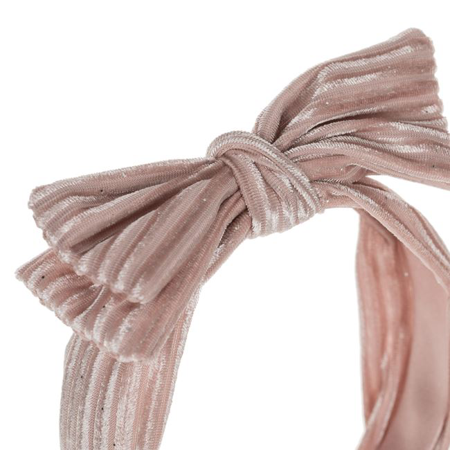 Στέκα μαλλιών παιδική φαρδιά, με φιόγκο σε powder pink χρώμα με ribbed μαλακό βελουτέ ύφασμα.